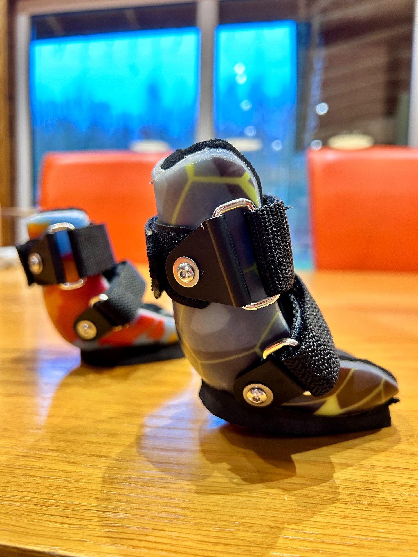 Používáme lehké, odolné a flexibilní materiály, které se přizpůsobí tvaru tlapky a zároveň poskytují vysokou úroveň ochrany proti tvrdému povrchu, nerovnostem a povětrnostním podmínkám. Botička tak nejen zvyšuje stabilitu při chůzi, ale také pomáhá minimalizovat nežádoucí rotace a přepadávání tlapky, které mohou vznikat vlivem deformit nebo oslabení prstů.